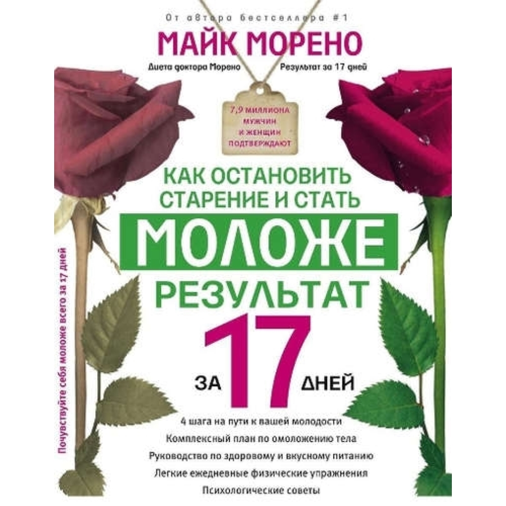 Доктор Майк Морено разработал четкую и простую в выполнении 17-дневную программу омоложения организма. Читателям предлагается сделать 4 простых шага, чтобы чувствовать себя моложе и здоровее. Каждый шаг программы сфокусирован на омоложении определенных частей вашего тела и организма: от сердца и легких до нервной системы и репродуктивных функций. Автор объясняет, как надо дышать, что нужно делать для укрепления иммунитета, каким образом сохранить гибкость и крепость суставов, остроту зрения и чувств и многое другое. Вы узнаете о своем организме так много интересного, что уже просто не сможете небрежно к нему относиться. Действуйте, у вас все получится!