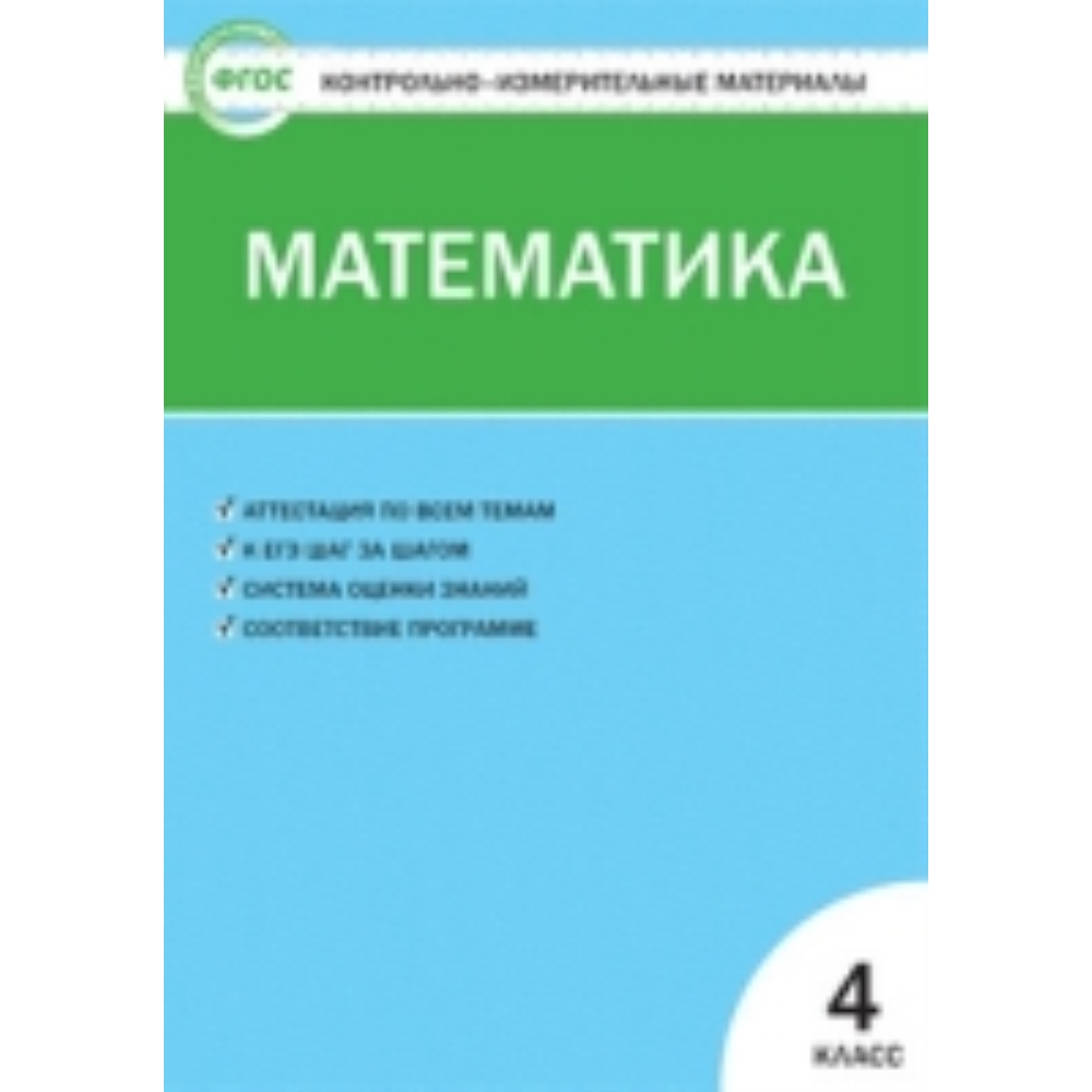 В пособии представлены контрольно-измерительные материалы по математике для 4 класса. Все задания соответствуют программе общеобразовательных учреждений и требованиям к уровню подготовки учащихся. Систематическая работа с материалами сборника позволит обучить школьников работе с тестами, что поможет в дальнейшем успешно выполнить задания итоговой аттестации.Издание адресовано учителям начальных классов, школьникам и их родителям.