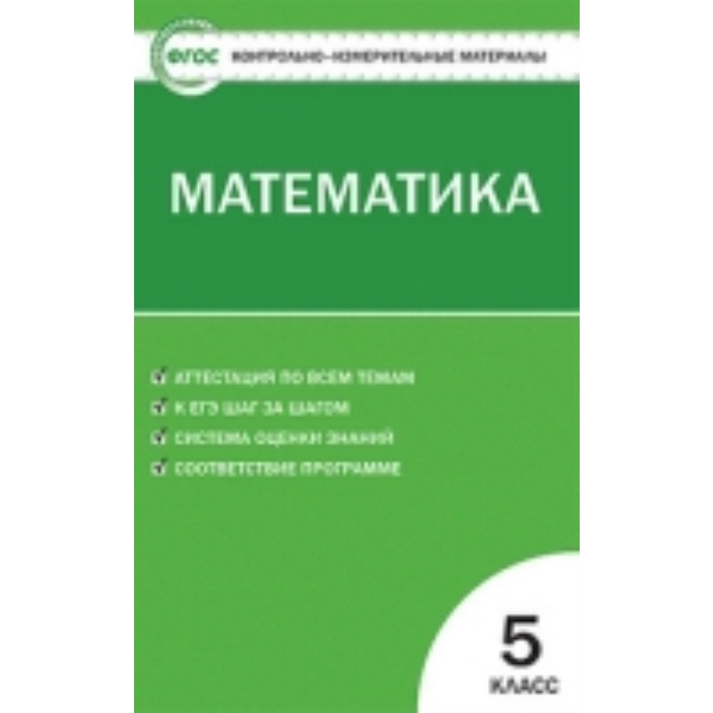 В пособии представлены контрольно-измерительные материалы по математике для 5 класса. Все задания соответствуют программе общеобразовательных учреждений и требованиям к уровню подготовки учащихся. Систематическая работа с материалами сборника позволит обучить школьников работе с тестами, что поможет в дальнейшем успешно выполнить задания государственной аттестации и тесты ЕГЭ.Издание адресовано учителям математики, школьникам и их родителям.