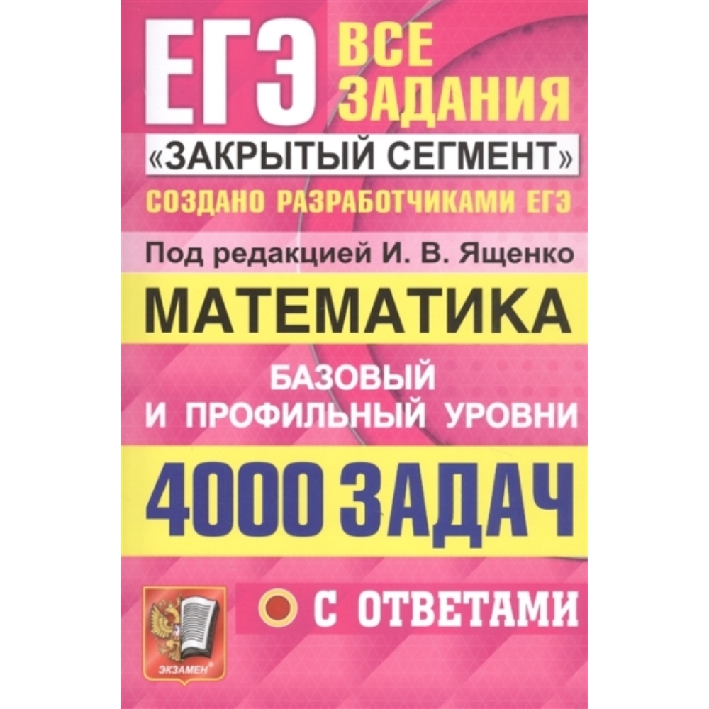 Задания по математике, не вошедшие в открытый банк заданий. Сборник содержит 4000 заданий Единого государственного экзамена по математике. Книга позволит подготовиться к любому прототипу из заданий 1-14 (профильный уровень) и 1-20 (базовый уровень). В сборнике приведены ответы к заданиям. Пособие будет полезно учителям, учащимся старших классов, их родителям, а также методистам и членам приемных комиссий. Приказом № 729 Министерства образования и науки Российской Федерации учебные пособия издательства "Экзамен" допущены к использованию в общеобразовательных организациях.