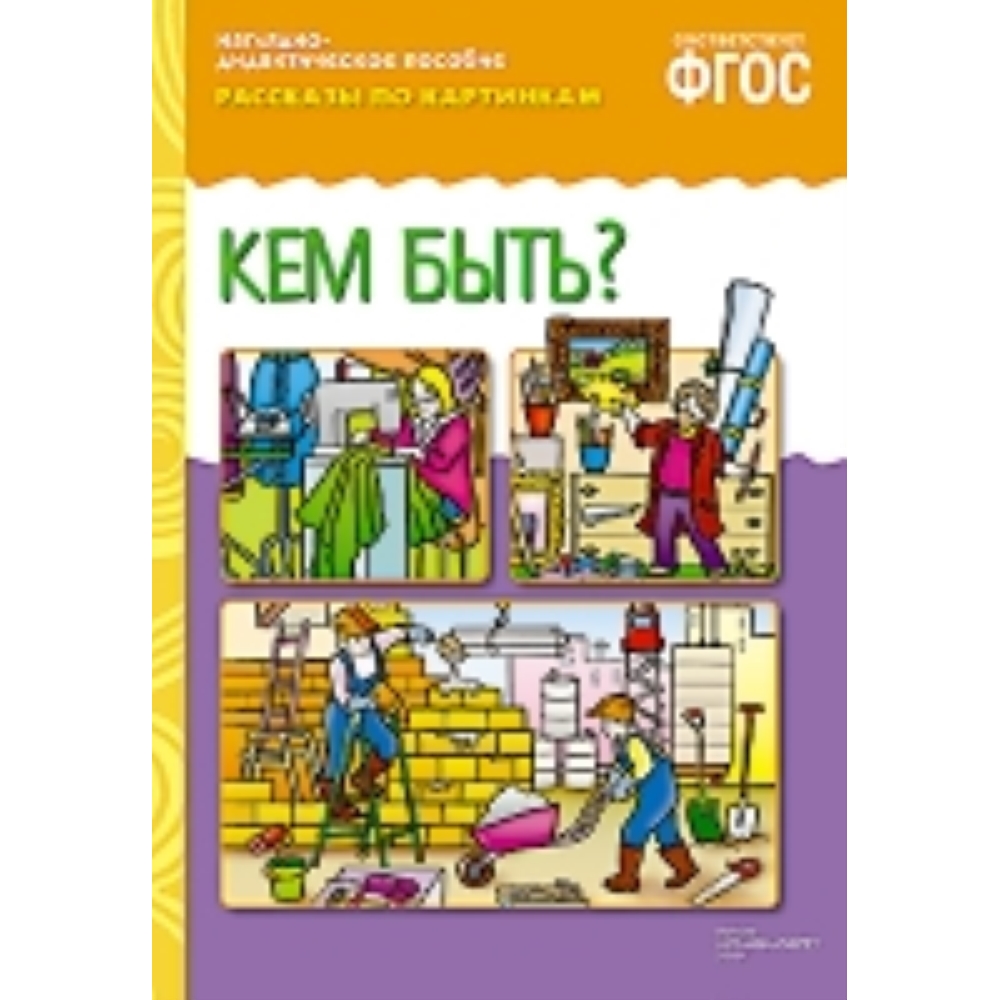 Наглядно-дидактическое пособие «Кем быть?» серии «Рассказы по картинкам» предназначено для развития связной речи у детей 3-7 лет на групповых и индивидуальных занятиях в детском саду и дома. В пособии представлены 8 красочных иллюстраций на тему «Кем быть?» (Учитель, художник, музыкант и др.). Данный наглядный материал с успехом может быть использован на занятиях по ознакомлению с окружающим миром, для развития речи и мышления, в логопедических играх, для развития логического мышления.