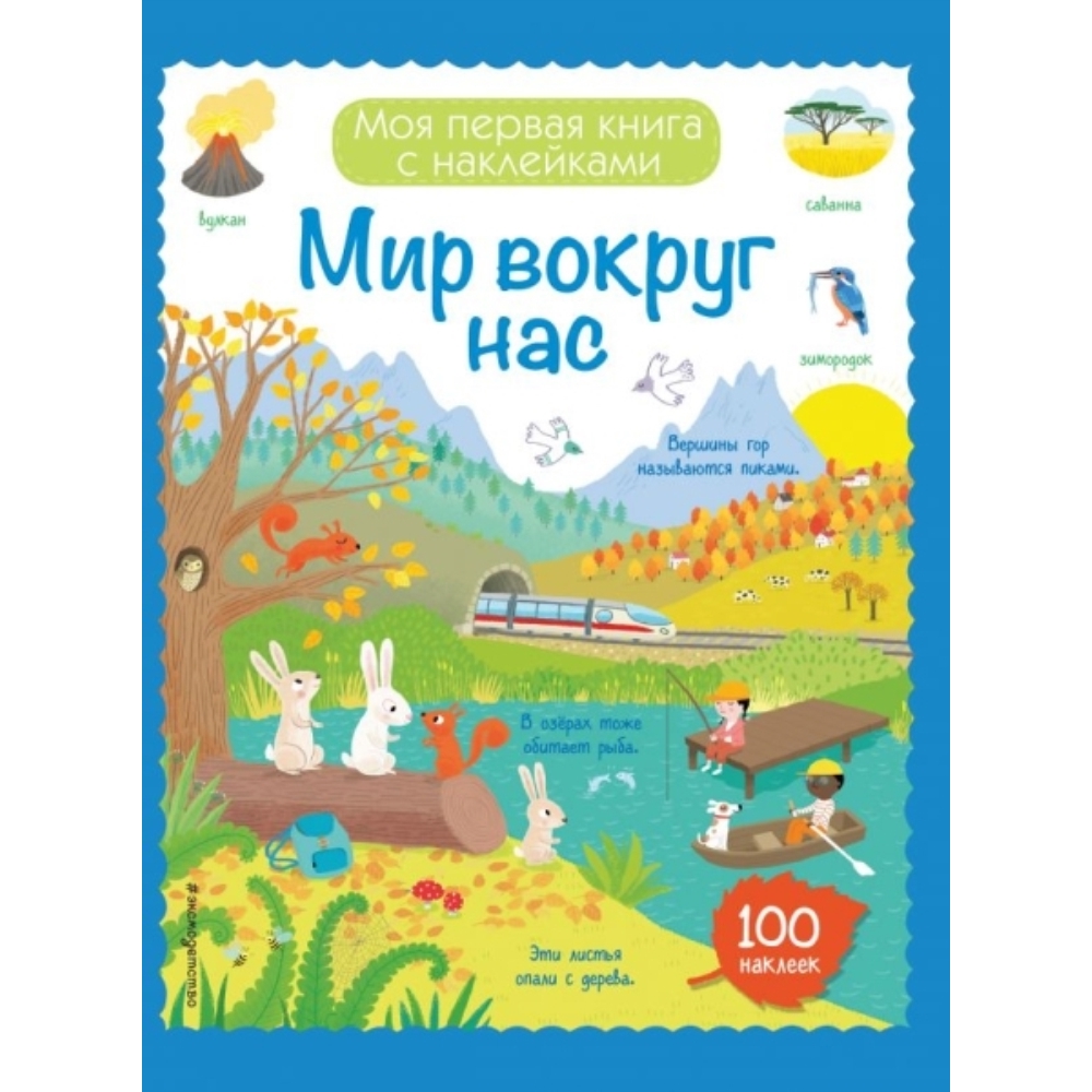 Эта замечательная книга предназначена для детей от 4-х лет. Она станет верным спутником малышей в увлекательном путешествии по миру знаний. Читая интересный текст и приклеивая наклейки (а их в книге 100!) дети познакомятся с окружающим миром и узнают, почему идет дождь, где живут пингвины, сколько океанов на Земле.