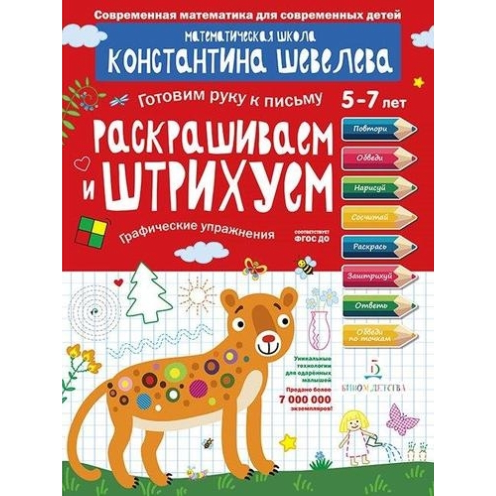 Тетради К. Шевелева уже много лет входят в первую десятку книжных рейтингов в сегменте пособий по развитию математических способностей дошкольников. Его знаменитые упражнения и графические диктанты наверняка привлекут родителей, которые хотят получить от занятий стопроцентный результат. Системно, понятно, увлекательно - три главных составляющих успеха этих красочных пособий. В каждой тетрадке - приятный бонус для маленьких математиков: страничка-черновик, на которой малыш может тренироваться столько, сколько захочет.