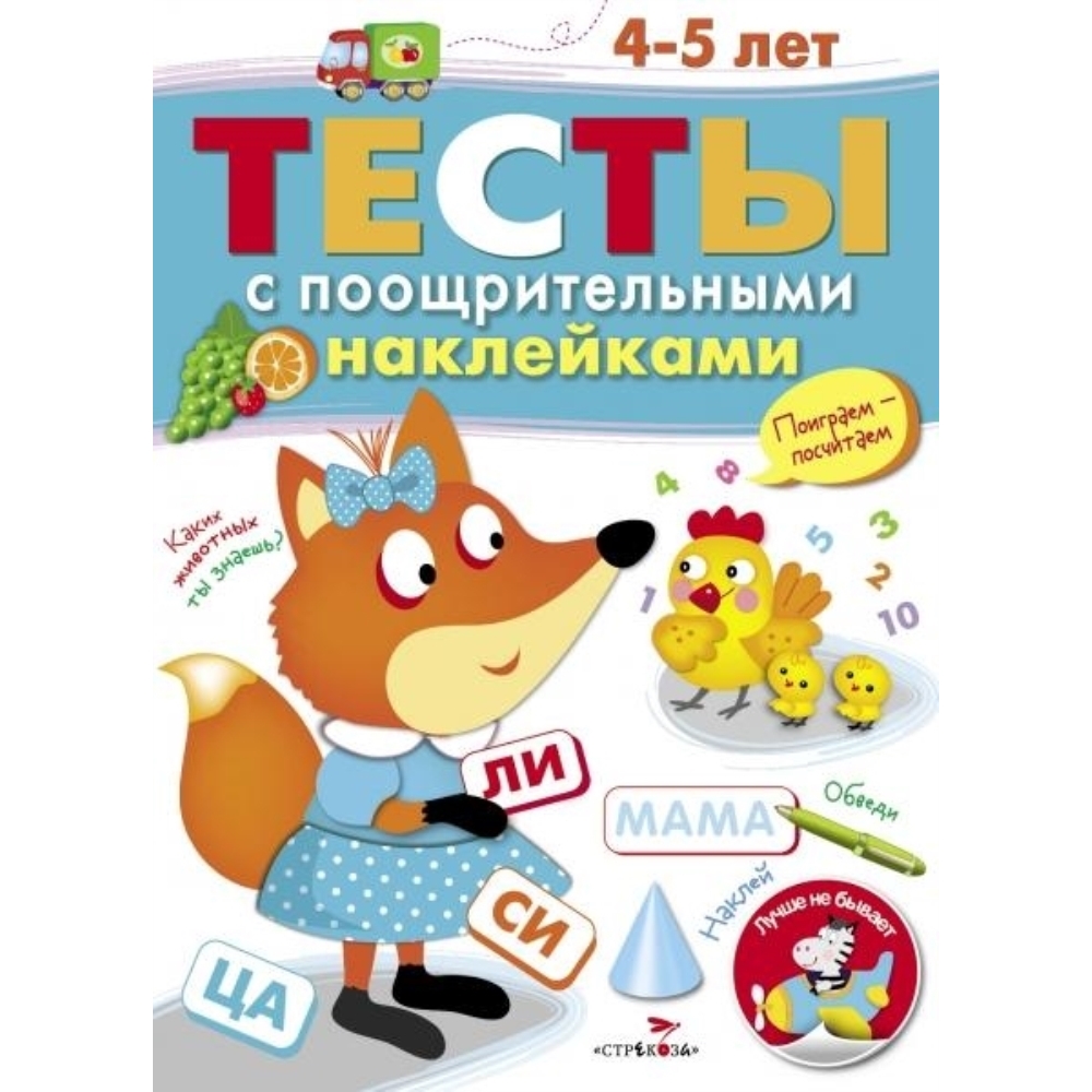 Тесты помогут оценить знания, умения и навыки ребёнка в различных областях: математика, окружающий мир, развитие речи, художественное творчество и физическое развитие. В книге вы найдёте много интересных игр и упражнений на логику, внимание, мелкую моторику. За правильное выполнение заданий ребёнка ждут призы - поощрительные наклейки. Он сам может выбирать их и размещать на страницах книги. Для организации совместной работы взрослого и ребёнка дошкольного возраста.