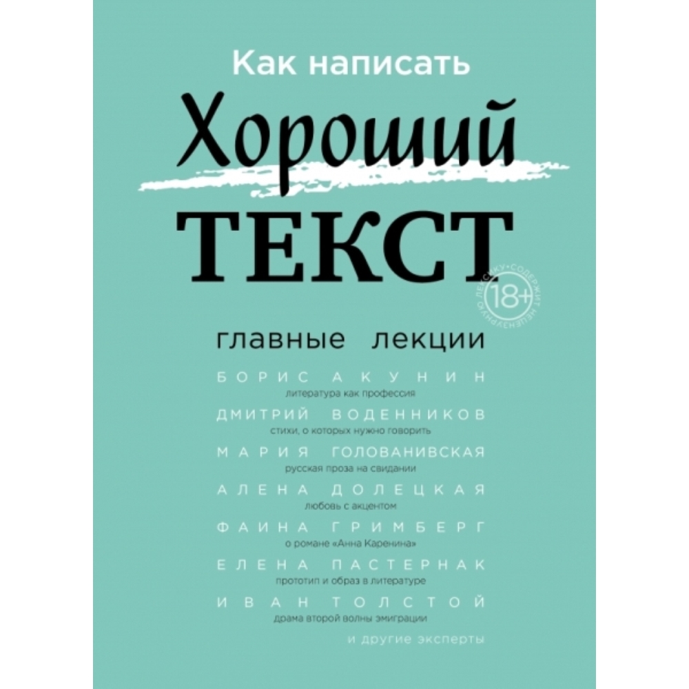 Уникальный проект от школы "Хороший текст", где учителем может быть только свершивший, а учеником - только жаждущий. Сборник главных лекций от Бориса Акунина, Елены Пастернак, Дмитрия Воденникова, Алены Долецкой и других экспертов.
