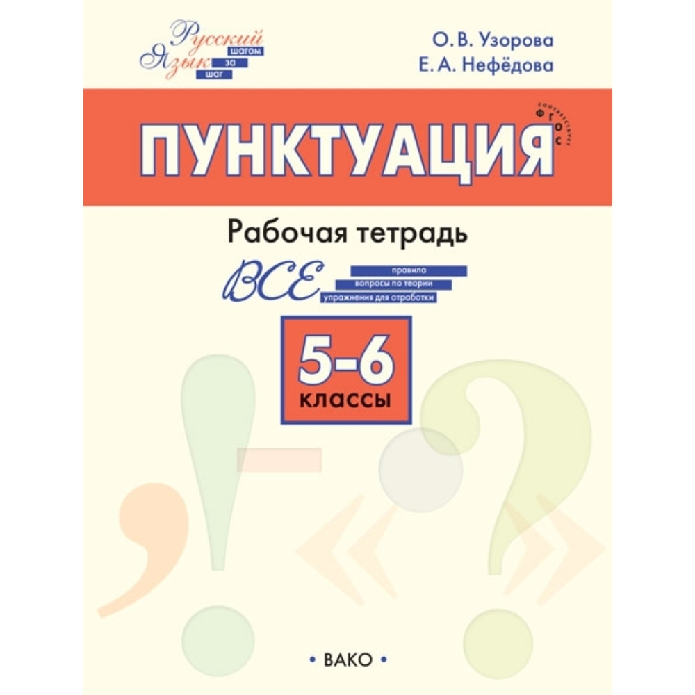 Пособие содержит основные правила пунктуации, изучаемые в 5–6-х классах, и упражнения для отработки полученных навыков. Удобная структура книги позволит быстро находить необходимые темы. Предлагаемый материал поможет ученикам начать качественную подготовку к ОГЭ и ЕГЭ по русскому языку. В конце пособия приведены ответы ко всем заданиям. Пособие составлено в соответствии с требованиями ФГОС основного общего образования.Предназначается учителям, ученикам и их родителям.