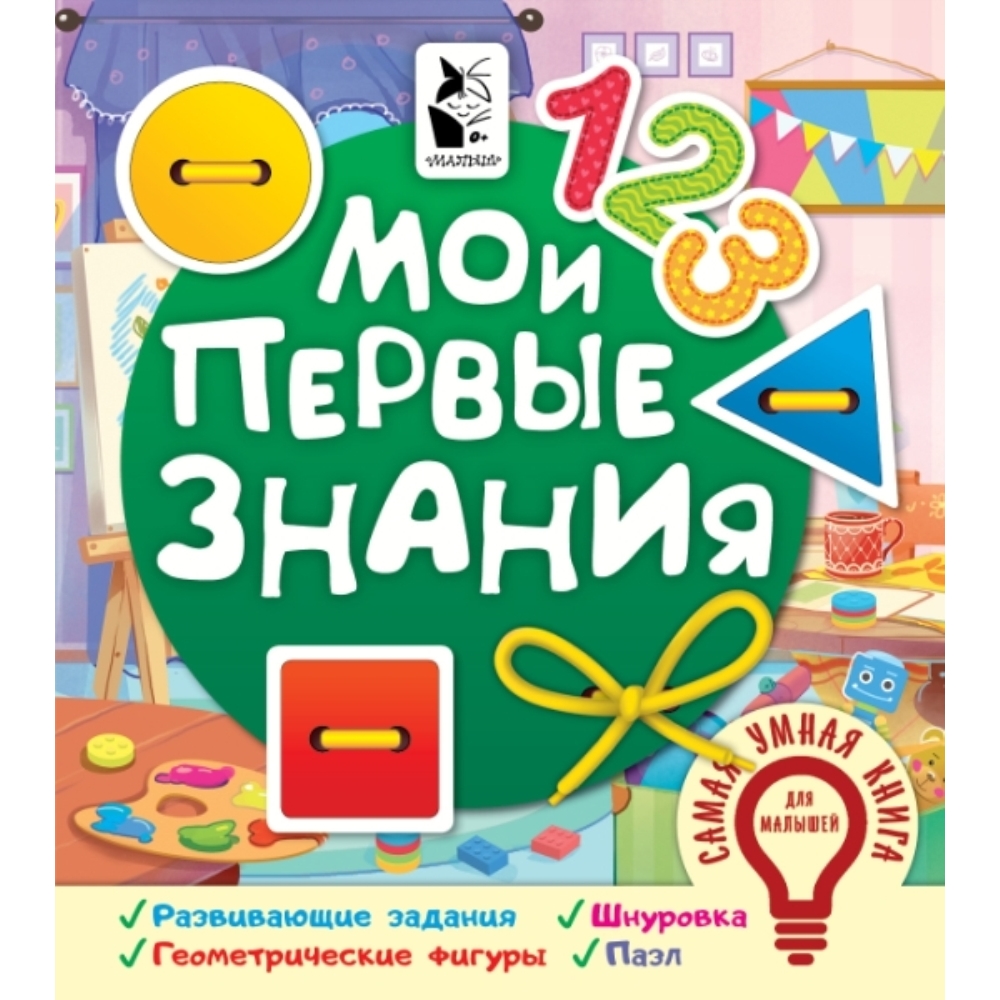 Книга «Мои первые знания» в игровой форме расскажет ребенку о цветах и формах, научит подбирать противоположности, познакомит ребенка с цифрами и счетом. А благодаря плотному картону книжка не порвется во время чтения и игры. В книгу входят: - картонные фигурки и шнурок, которые можно достать и играть с ними; - красочная картинка-пазл; - развивающие задания, которые познакомят малыша с окружающим миром, помогут в тренировке внимания, образного мышления, мелкой моторики.