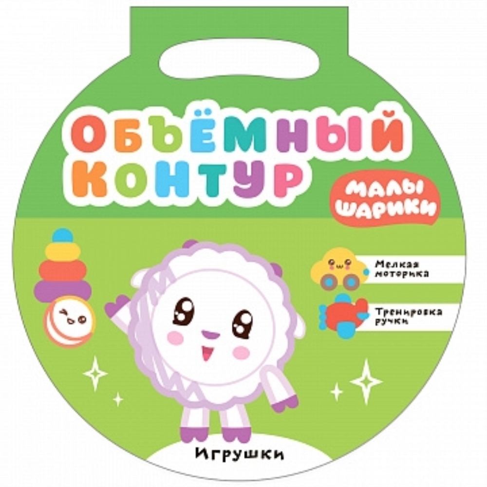 Книга «Игрушки» из серии «Малышарики. Объемный контур» - не просто раскраска с героями любимого мультсериала, а развивающая книжка с объемным блестящим контуром. Благодаря уникальной технологии печати обыкновенная раскраска превращается в отличный тренажер по развитию мелкой моторики. Выпуклый контур не даст карандашу или фломастеру выйти за его границы, и раскрашенная картинка получится аккуратной. А цвет контура подскажет выбор нужного карандаша для раскрашивания. Отличный результат вдохновит ребенка на дальнейшее творчество. Благодаря таким занятиям у ребенка постепенно будет формироваться контроль движения руки.Вместе с очаровательными Малышариками ребенок познакомится с противоположностями «один» и «много», а также узнает о самой любимой игрушке каждого героя. Необычная круглая форма книжки с ручкой понравится детям - ведь ее так удобно носить с собой!