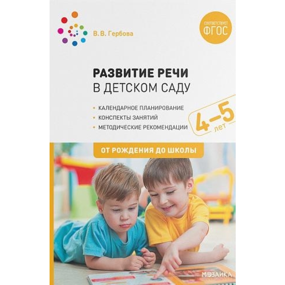 Пособие издано в рамках учебно-методического комплекта к программе «ОТ РОЖДЕНИЯ ДО ШКОЛЫ».В пособии представлена система работы по развитию речи у детей 4–5 лет.Книга содержит:• планирование образовательной работы с детьми;• конспекты занятий;• примеры заданий, способствующих диалогическому развитию речи;• артикуляционную гимнастику;• примерный список литературы для чтения детям.Книга адресована широкому кругу работников дошкольного образования, а также студентам педагогических колледжей и вузов.