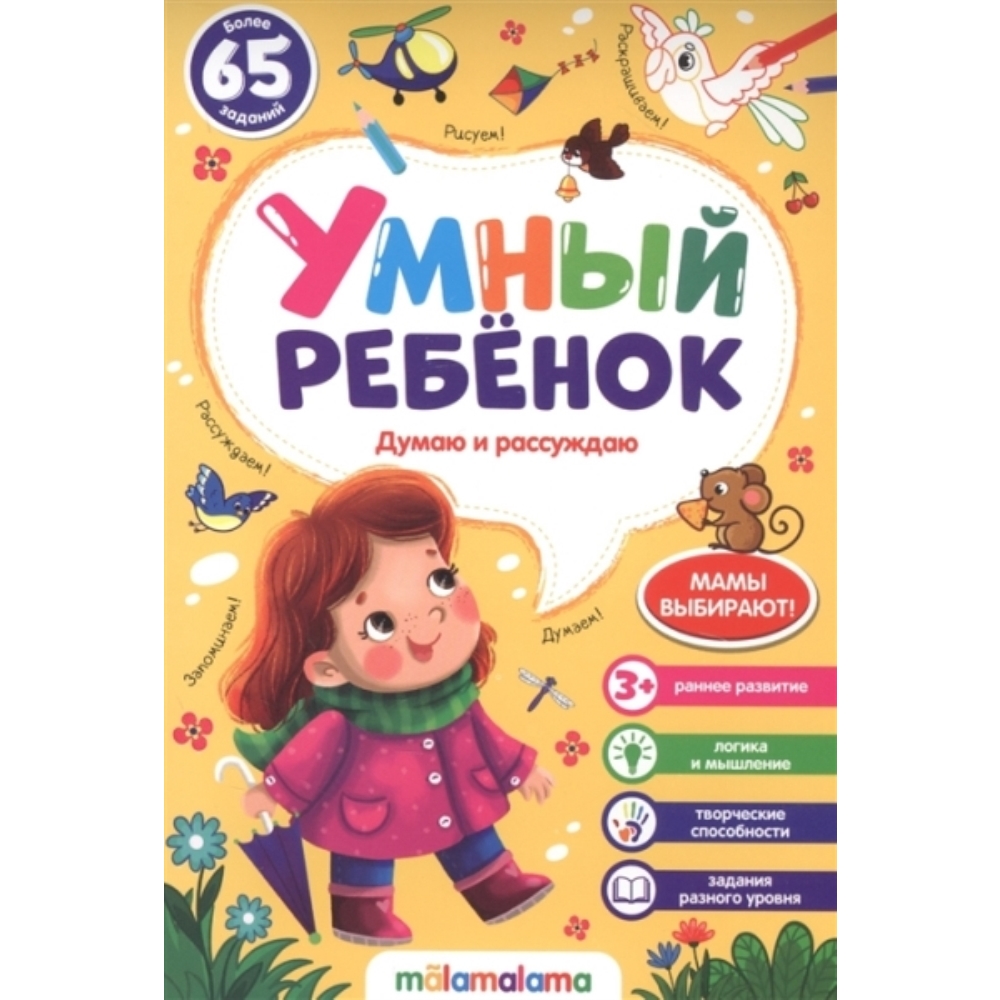 Дидактический материал "Умный ребенок. Думаю и рассуждаю" представляет собой блокнот, на каждой из страниц которого малыша ждут приветливые герои, захватывающие сюжеты, разнообразные и увлекательные задания. С помощью них ребенок научится анализировать, сопоставлять, выделять, объединять, рассуждать, делать выводы.