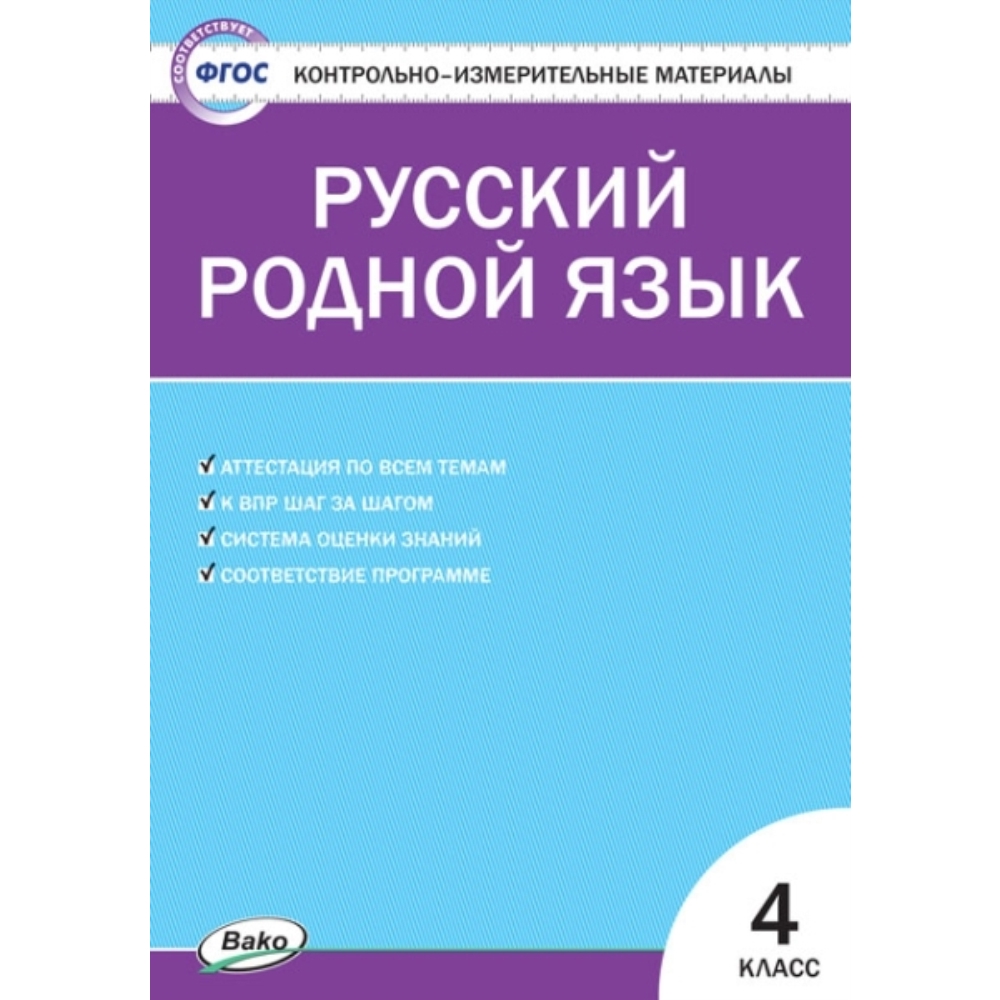 Издание содержит контрольно-измерительные материалы по предмету «Русский родной язык» для 4 класса. Порядок тем соответствует учебнику О.М. Александровой и др. Все задания составлены с учётом требований ФГОС начального общего образования. В пособии даны ответы и предложены способы оценивания тестовых заданий.Адресовано учителям начальных классов, учащимся 4 класса и их родителям.