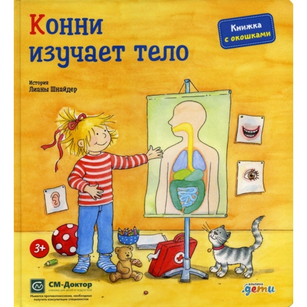 Отчего болит живот, зачем нам волосы, почему у малышей зубы могут снова вырасти, а у взрослых - На все заковыристые вопросы ребят Конни ответит примерами из жизни, а ещё поделится интересными научными фактами. В книге много картинок-окошек, которые можно раскрыть и посмотреть, как устроены наши внешние и внутренние органы. Будет интересно для малышей и ребят дошкольного возраста.