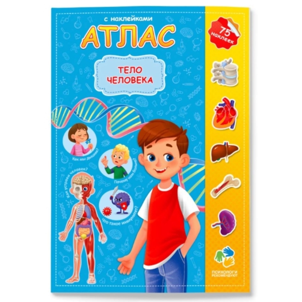 Как в доступной форме объяснить ребёнку устройство человеческого тела? Легко с нашим атласом «Тело человека». В нём простым и понятным ребёнку языком рассказывается о том, как устроен организм человека, как работает наш иммунитет, сколько костей в теле и ещё много всего интересного. Самые любознательные смогут найти на первой странице увлекательный кроссворд. Ну и конечно, куда же без ярких и интересных наклеек, место которых нужно разыскать в атласе.