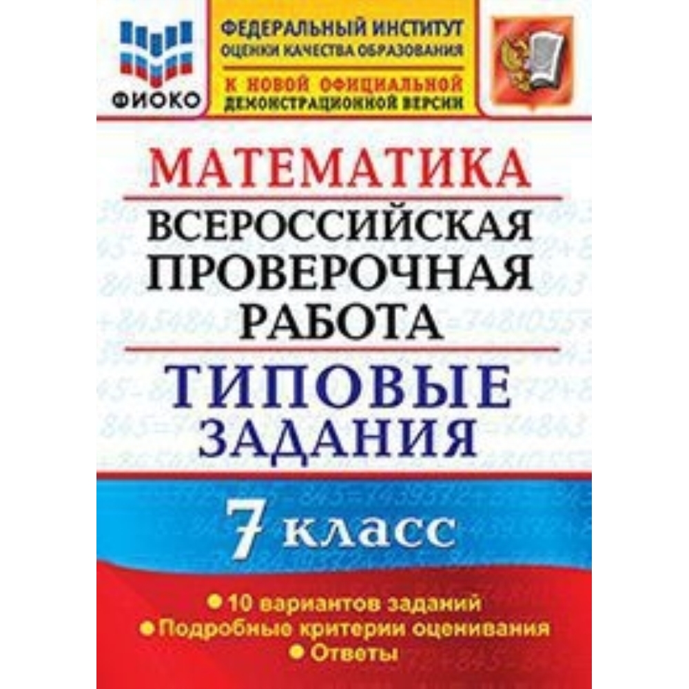 Данное пособие полностью соответствует федеральному государственному образовательному стандарту (второго поколения). Книга содержит 10 вариантов типовых заданий Всероссийской проверочной работы (ВПР) по математике для учащихся 7-х классов. Сборник предназначен учащимся 7-х классов, учителям и методистам, использующим типовые задания для подготовки к Всероссийской проверочной работе по математике.