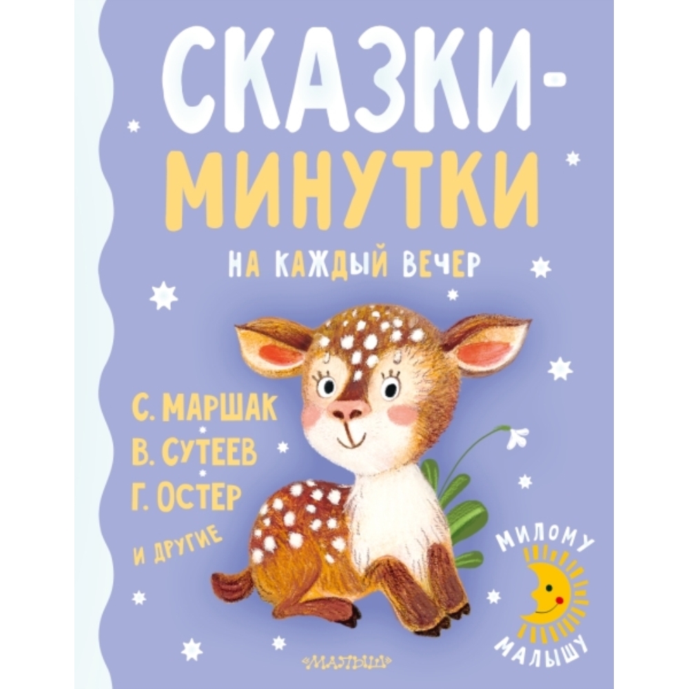 В книгу «Сказки-минутки на каждый вечер» вошли самые знаменитые маленькие сказки с большими картинками, чтобы малышам было интересно слушать сказку и не скучать, разглядывая красивые иллюстрации. В сборнике мальчиков и девочек ждут весёлые, добрые и смешные герои Г. Остера, С. Маршака, К. Чуковского, С. Козлова и других авторов, которые точно знают, как нужно писать для детей, чтобы маленькие непоседы полюбили книжку и вечернее чтение с родителями, бабушками и дедушками. В начале книги есть специальная страничка, где можно написать имя малыша и при желании приклеить фотографию милого крохи! Для дошкольного возраста.