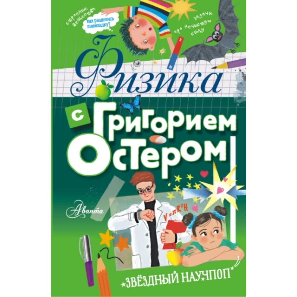 Григорий Остер - настоящий классик детской литературы. На его «Вредных советах» выросло уже несколько поколений. И теперь мы точно знаем, что его советы были полезны! И если вы уже выучили с Остером математику, то самое время браться за физику. Она всегда считалась в школе трудным предметом. Но Григорий Бенционович и не с такими сложностями справлялся. Поэтому, смеясь и борясь с ленью и неуверенностью, давайте решать задачи и выполнять лабораторные работы! Хорошие оценки на уроках физики вам обеспечены! 4-ая сторонка обложки Никто не расскажет об этой книге лучше, чем сам автор - остроумный и всезнающий Григорий Остер! Улыбнитесь и оцените уровень вопросов, с которыми вам предстоит встретиться: «Мимо изучающего законы движения физика трижды пролетело что-то большое и квадратное, а потом долго кружилось кое-что круглое, но маленькое. Важно ли физику знать, что это было?» «Перестала ли действовать сила тяжести на Вовочку, который уже долетел с крыши сарая до поверхности планеты Земля?» «Дед, взявшись за репку, развивает силу тяги до 600 Н, бабка до 100 Н, внучка до 50 Н, жучка до 30 Н, кошка до 10 Н и мышка до 2 Н.Чему равна равнодействующая всех этих сил, направленных по одной прямой в одну и ту же сторону? Справилась бы с репкой эта компания без мышки, если силы, удерживающие репку в земле, равны 791 H?»