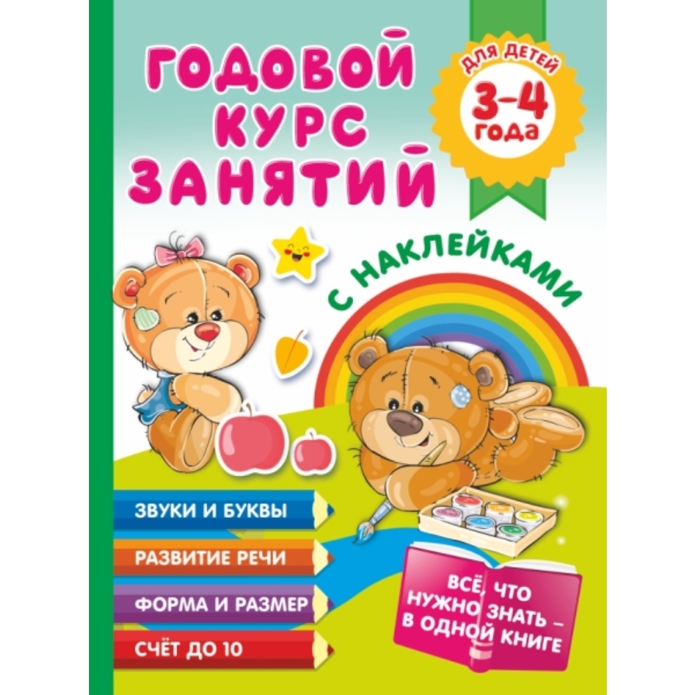 «Годовой курс занятий с наклейками для детей. 3–4 года» - это развивающие задания по авторской методике логопеда-практика А.С. Матвеевой + яркие наклейки для обучения малышей в возрасте 3–4 лет. Выполняя увлекательные задания, ребёнок значительно расширит кругозор и разовьёт интеллект, потренируется правильно произносить звуки, познакомится с понятиями формы, цвета, размера и количества предметов, научится считать до 10, рассказывать, объяснять, читать стихи наизусть. Для дошкольного возраста.