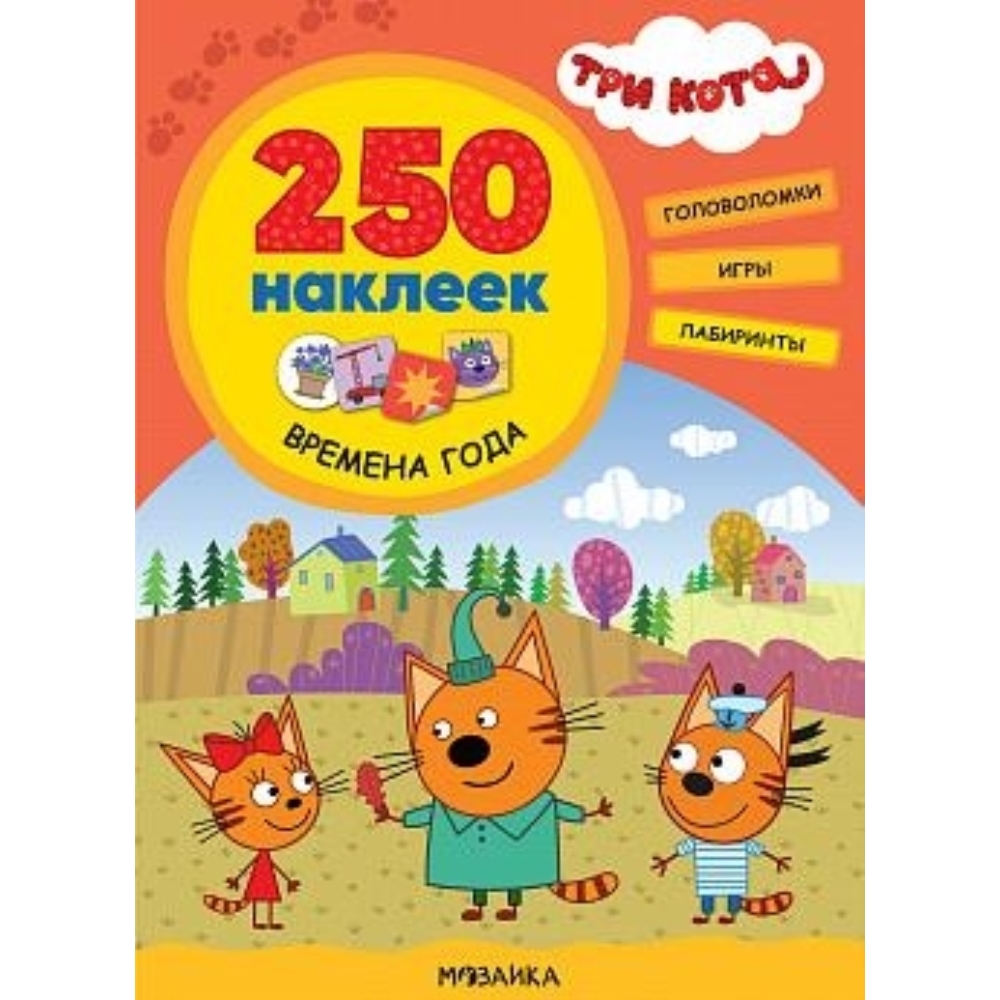 Большой формат, много заданий и наклеек и любимые герои мультсериала «Три кота» - вот идеальное сочетание, которое надолго увлечет любого ребенка. На каждой странице книги «Времена года» серии «Три кота. 250 наклеек» ребенок найдет интересные задания на тему сезонных изменений; все их нужно будет решить с помощью наклеек. Пусть это не так просто, но очень увлекательно! А приклеив все 250 наклеек, можно проверить себя, в конце спрятаны ответы на все головоломки. Логика, внимание, память - всестороннее развитие мышления вместе с Коржиком, Карамелькой и Компотом. Миу-миу-миу!