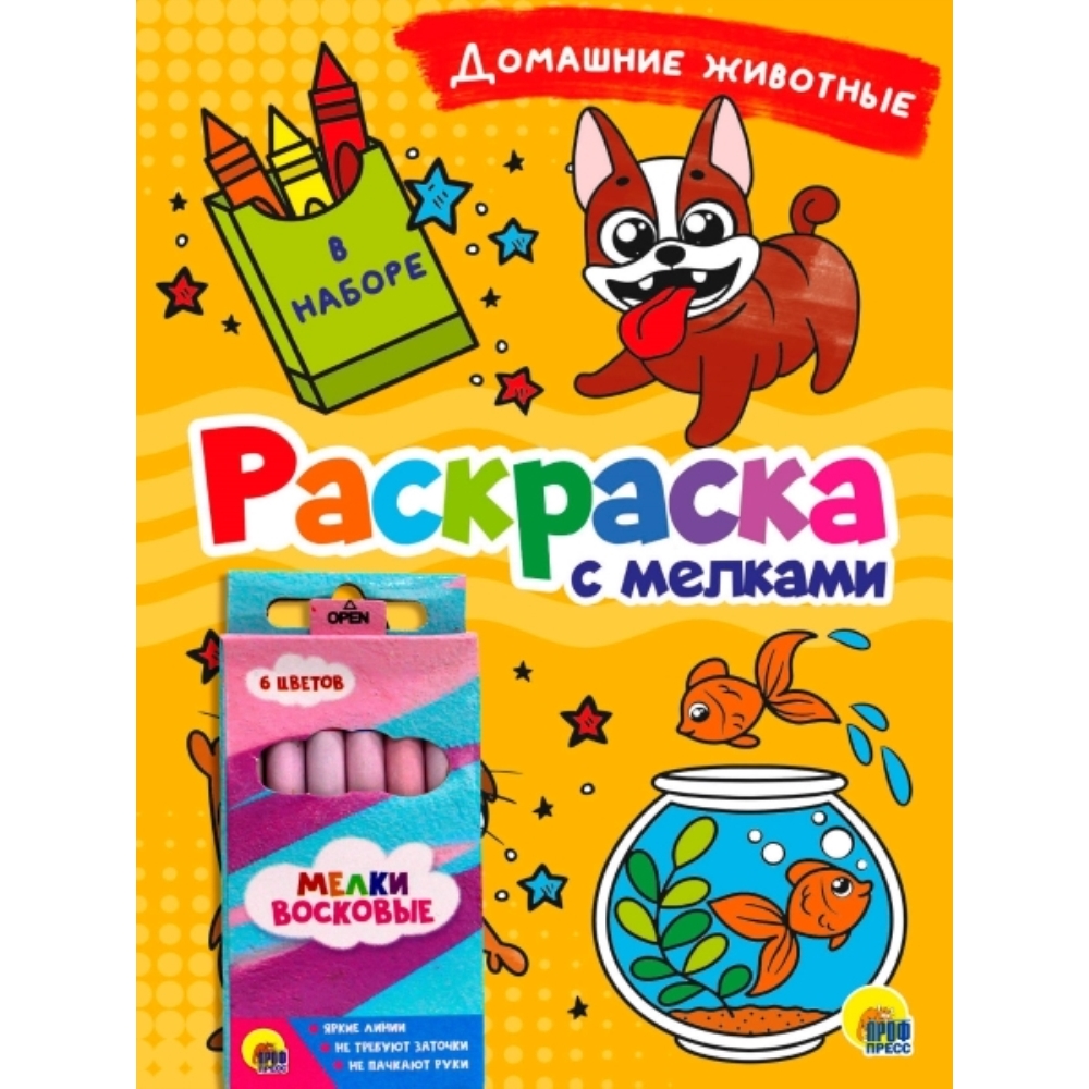 Представляем новую серию раскрасок для малышей в комплекте с восковыми мелками. Наборы представлены в четырёх темах: «Машинки», «Монстрики», «Волшебный мир» и «Домашние животные», в каждом – 16-страничные книжки с крупными черно-белыми картинками – для удобства раскрашивания мелками.