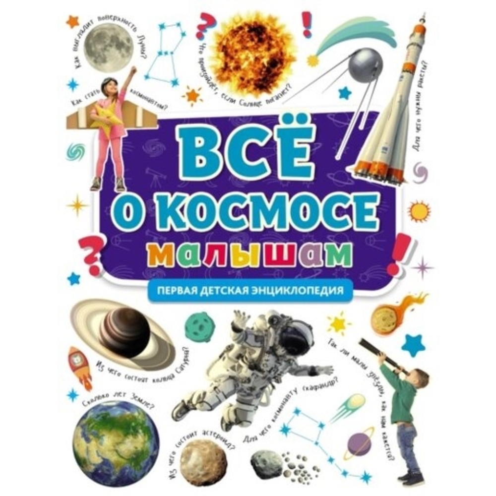 Перед вами яркая, увлекательная, познавательная книга. Раскрыв её, малыш познакомится с устройством Солнечной системы, узнает, в чём заключаются особенности планет и различных космических явлений, откроет для себя удивительную профессию космонавта. А ещё энциклопедия ответит на множество вопросов, волнующих каждого ребёнка: почему происходят солнечные затмения, что такое атмосфера, сколько длятся сутки на Луне, откуда у кометы хвост, как происходит подготовка будущих космонавтов, что такое невесомость, откуда берётся мусор в космосе и многие другие.