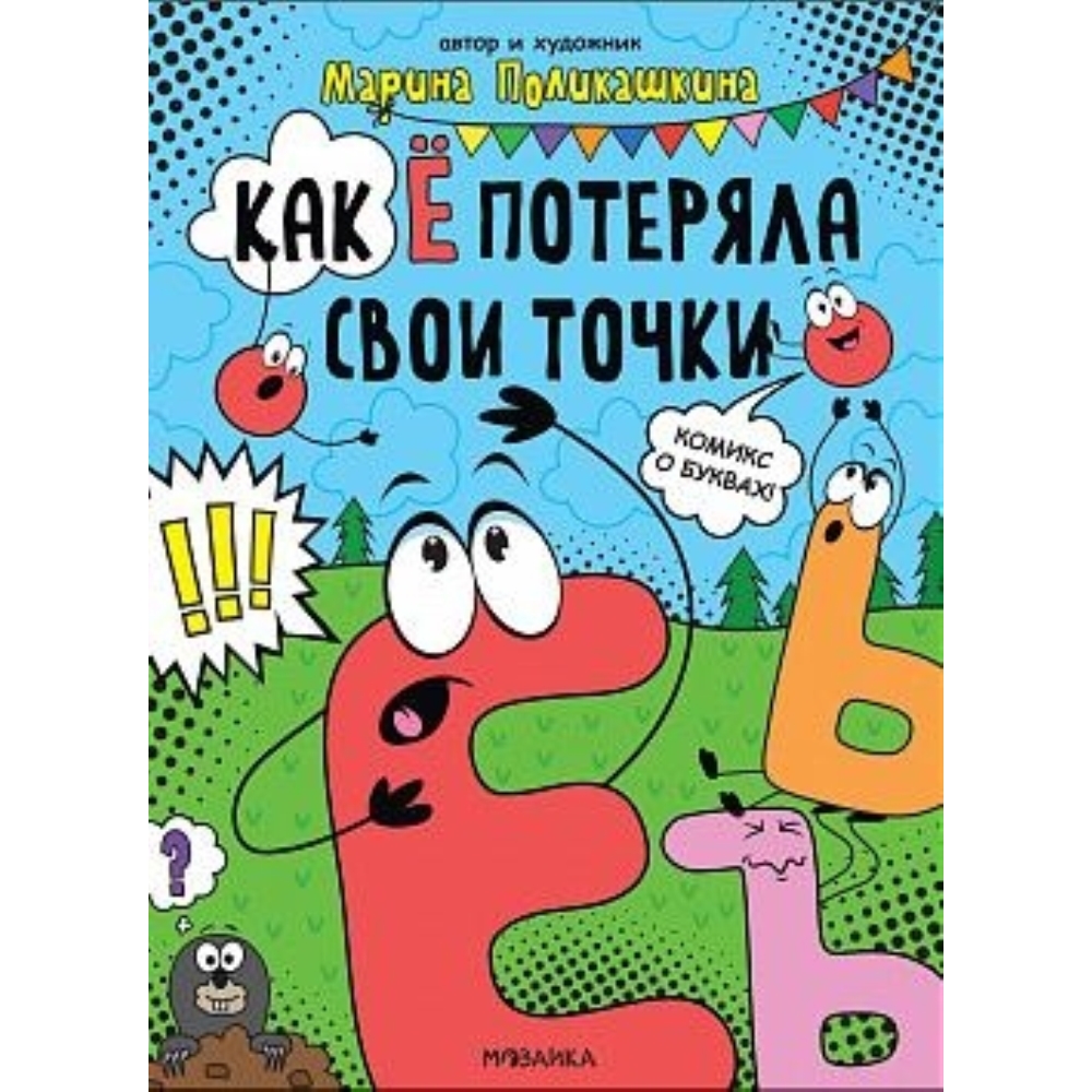 Захватывающий комикс про непоседливых точек, убежавших от буквы Ё, отлично подойдет как для тех, кто только начинает читать, так и для уже вполне уверенных в себе чтецов. А еще на страницах этой книжки вас ждут ваши старые знакомые — все буквы русского алфавита. Увлекательная история, проиллюстрированная харизматичными картинками, гарантированно увлечет даже самого «нечитающего» ребенка.