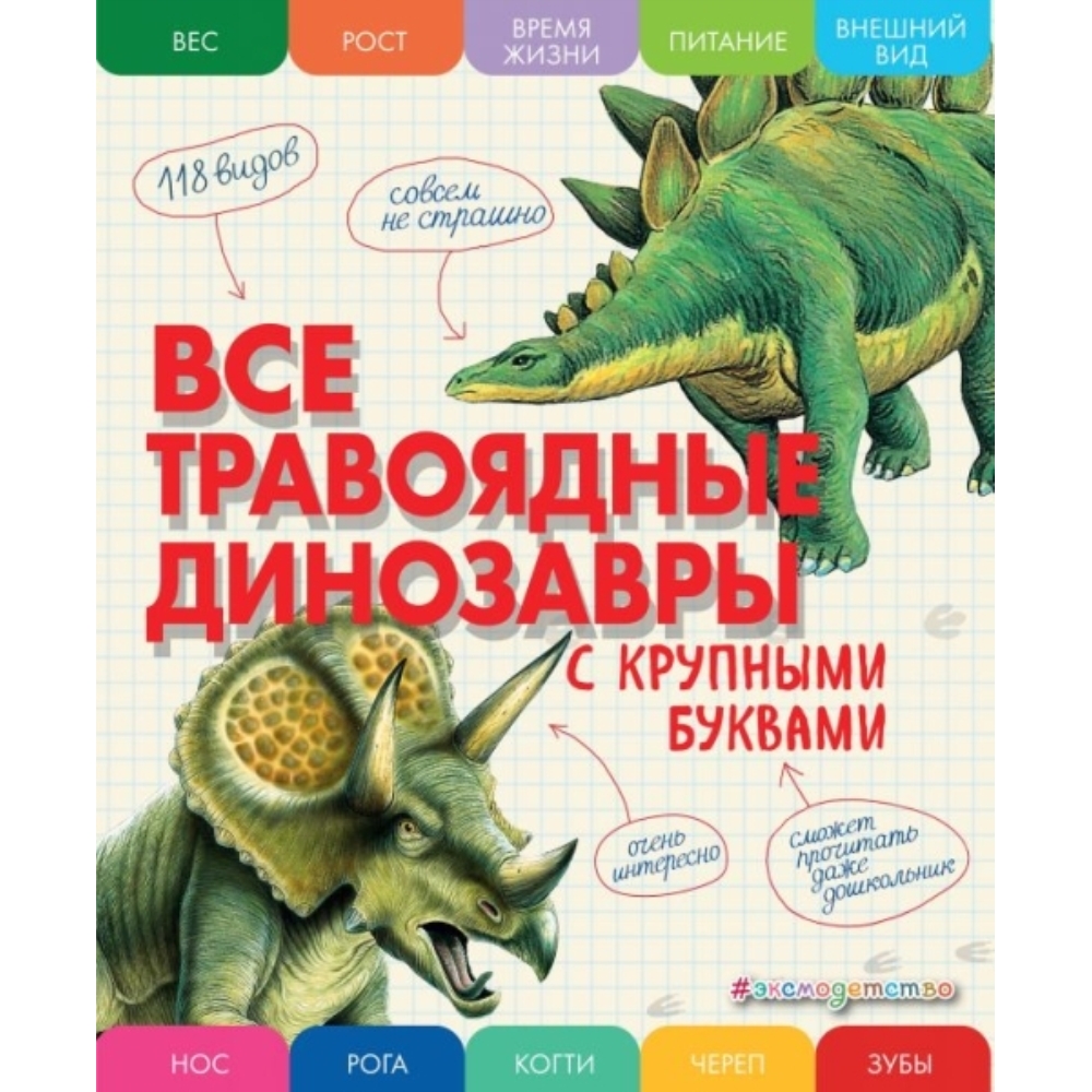 Это настоящая энциклопедия для детей: всё только самое важное, легко запоминающееся - и с крупными буквами. В книге с большими и подробными рисунками собраны интересные сведения о 118 травоядных динозаврах.