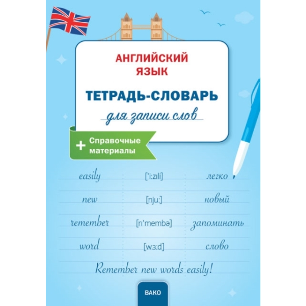 Эта тетрадь поможет выучить новые английские слова. Для удобства записи каждая страница тетради поделена на три части (слово, транскрипция, перевод). В конце издания дан справочный материал в табличной форме.