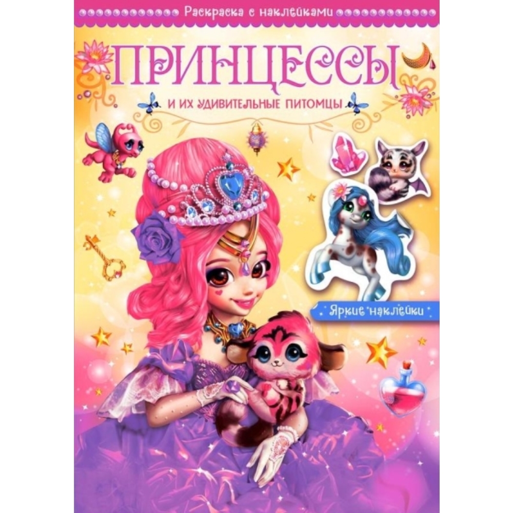 Принцессы и их удивительные питомцы (Волшебные раскраски с наклейками) Знакомьтесь — принцесса Залива бабочек и ее преданный дракон дружбы, рядом с ней принцесса Золотых песков и ее друг — хранитель времени. А еще лунная принцесса и принцесса дождя со своими необычными питомцами… В книге «Принцессы и их удивительные питомцы» серии «Волшебные раскраски с наклейками» ребенок будет увлеченно раскрашивать новых героев, включая фантазию и воображение, и приклеивать яркие наклейки на страницы книги, делая сказочный мир уютнее и наряднее. За такими занятиями ребенок проведет время не только интересно, но и с пользой: развивая мелкую моторику, внимание и воображение.
