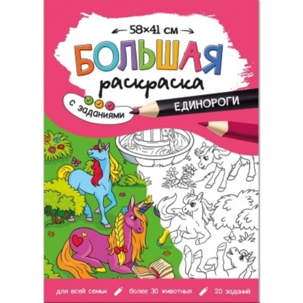 Большая раскраска с заданиями – это увлекательное путешествие в волшебный мир единорогов и принцесс и занимательный досуг для всей семьи! Найдите всех зайчиков, сосчитайте единорогов, пройдите лабиринт и разгадайте шифр. На картинке больше 30 животных! Выполняйте задания, находите важные детали и раскрашивайте сказочных персонажей – вместе! Раскраска развивает мышление, мелкую моторику, творческие способности и помогает готовить руку к письму.