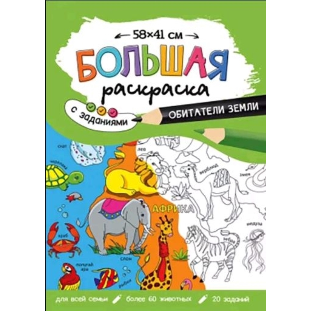 Большая раскраска с заданиями - это увлекательное путешествие в мир животных и занимательный досуг для всей семьи! Сосчитайте все материки на карте, найдите обитателей Евразии, пройдите лабиринт и разгадайте шифр.На картинке больше 60 животных!Размер раскраски: 58х41 см.