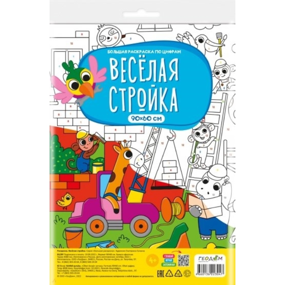 Большая раскраска по цифрам - увлекательное путешествие в мир творчества, полезное развлечение и весёлое учение! Будьте внимательны: у каждой цифры - свой цвет. Возьмите карандаши или фломастеры, следуйте подсказкам - и увидите, как кипит работа на стройке! Раскраска по номерам помогает тренировать мелкую моторику, внимание и усидчивость, изучать цвета и цифры, готовить руку к письму. А готовую работу можно повесить на стену и украсить комнату. Рекомендованный возраст: 4+.