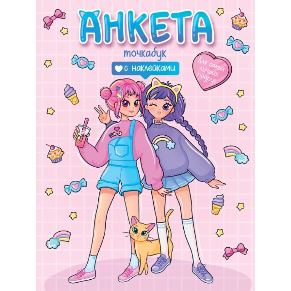 Анкета для девочек - это отличный подарок! Самые актуальные вопросы для подруг, интересные рубрики, тематические развороты и классные наклейки помогут весело провести время. А как интересно будет читать анкеты хозяйке после заполнения! Легкий способ узнать лучше своих подруг, подметить мелочи, которые раньше не замечал, или обнаружить общий интерес там, где и не думал его найти!Яркое стильное оформление, крутые обложки и удобный формат, который не займет много места в и без того тяжелом портфеле.
