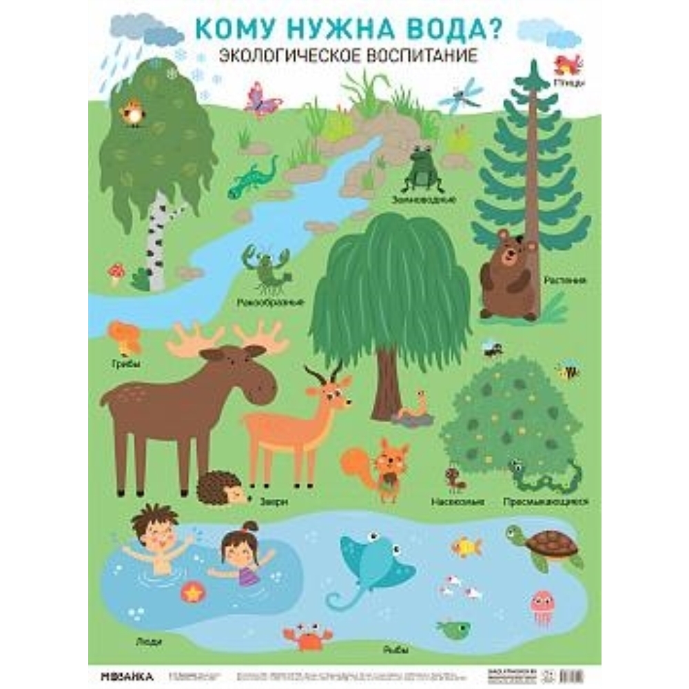 Плакат выходит в рамках учебно-методического комплекта к парциальной программе С.Н. Николаевой «Юный эколог».Данный тематический плакат используется в работе с детьми для формирования представлений о воде, как жизненно необходимом ресурсе для всего живого.Плакат может быть использован в работе с детьми в детском саду, начальной школе, в учреждениях дополнительного образования, дома.