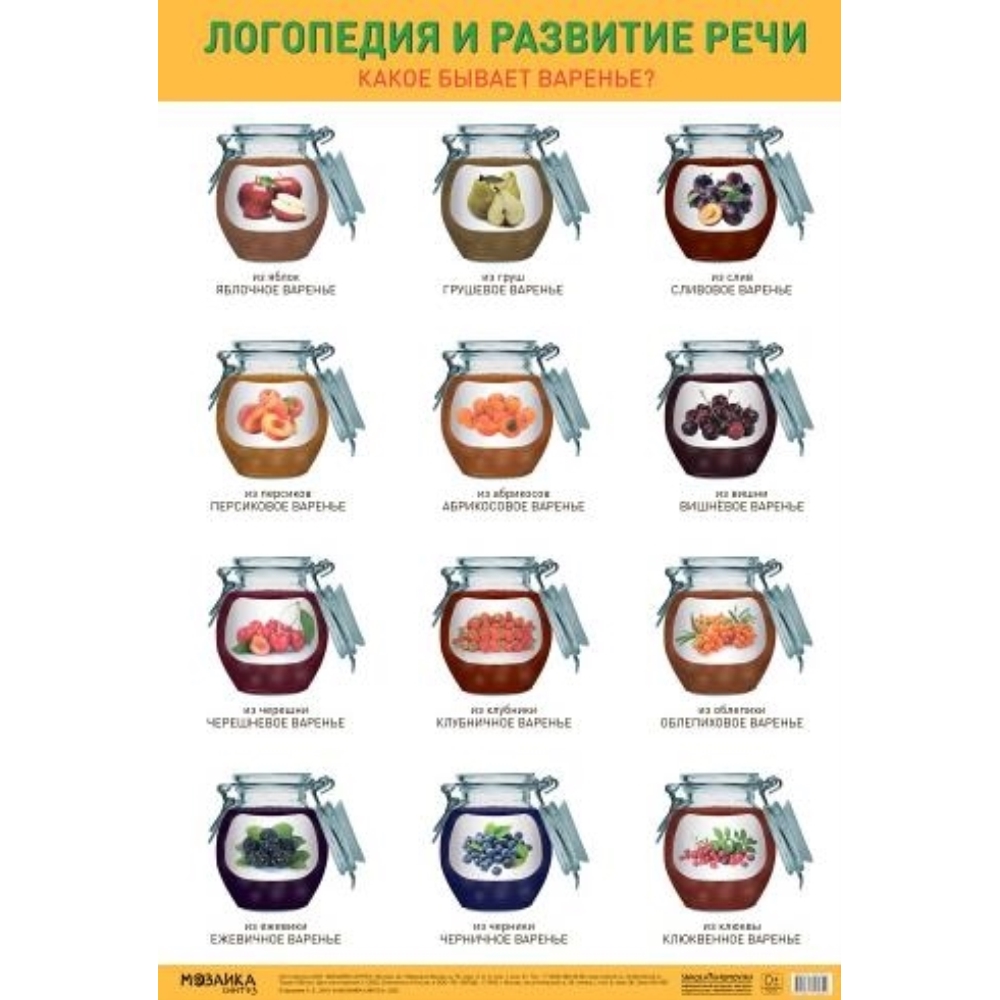 Плакат «Какое бывает варенье?» выходит в рамках серии тематических плакатов Логопедия и развитие речи.Данный наглядно-дидактический плакат используется воспитателем, учителем –логопедом на занятиях по развитию речи и ознакомлению с окружающим миром для расширения и уточнения знаний у детей о фруктах, ягодах и упражнении дошкольников в образовании имен прилагательных, имен существительных в родительном падеже множественного числа.Плакат может быть использован в работе с детьми в детском саду, в учреждениях дополнительного образования, дома.