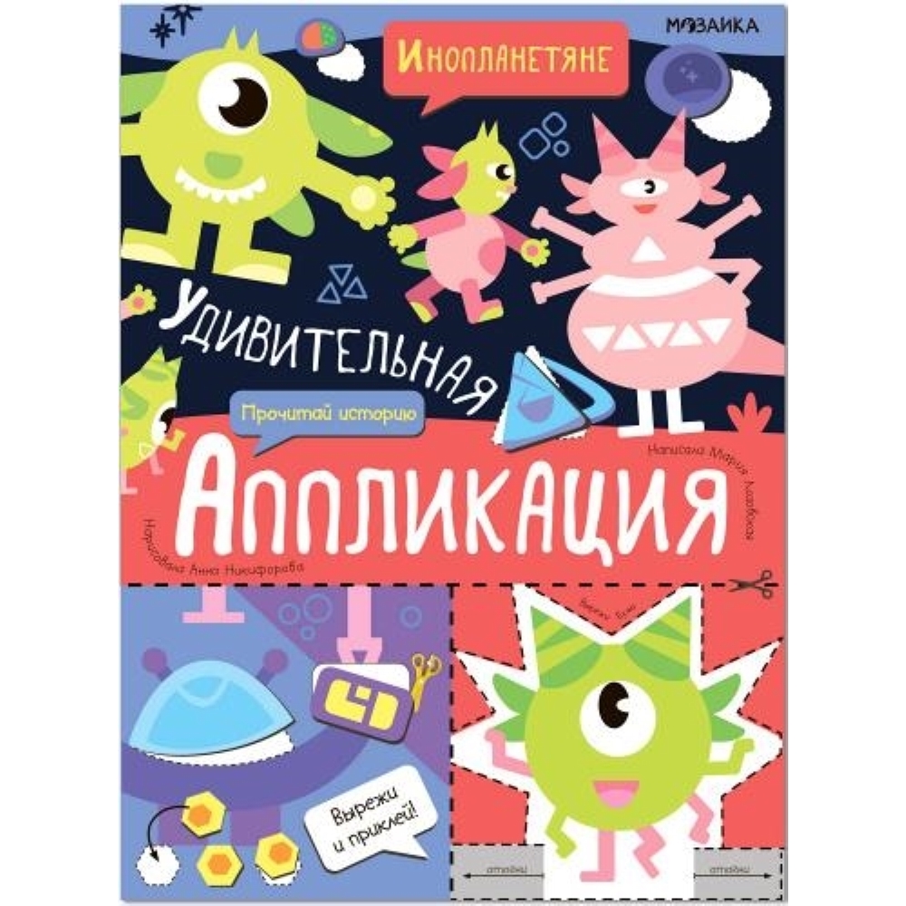 В книге «Инопланетяне» серии «Удивительная аппликация» ребенок познакомится с симпатичным инопланетянином Бамом и его семьей. Особенность и волшебство этой книжки в том, что ребенок сам сможет ее проиллюстрировать. Нужно вырезать цветные элементы внизу каждой странички и приклеить их на подходящие места. Книжка готова! А еще, пока ребенок работает над книжкой, он незаметно для себя потренирует мелкую моторику, глазомер, внимательность и усидчивость.