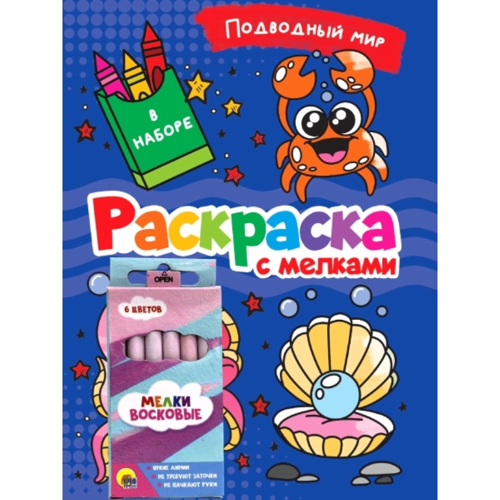 Серию раскрасок с восковыми мелками пополнили четыре новинки: «Для девочек», «Для мальчиков», «Дикие животные» и «Подводный мир». Каждая картинка – из крупных элементов и с толстым контуром: всё для удобства раскрашивания мелками!