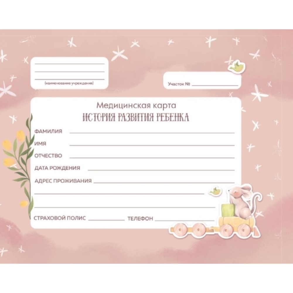 Медицинская карта необходима с рождения каждому малышу. Наша карта составлена по стандартной форме № 112/у История развития ребенка и содержит разделы для сведений о новорожденном, профилактических осмотрах, диагнозах, вакцинации и многом другом, а также большое количество дополнительных страниц. Благодаря твёрдой обложке карта прослужит долгие годы.