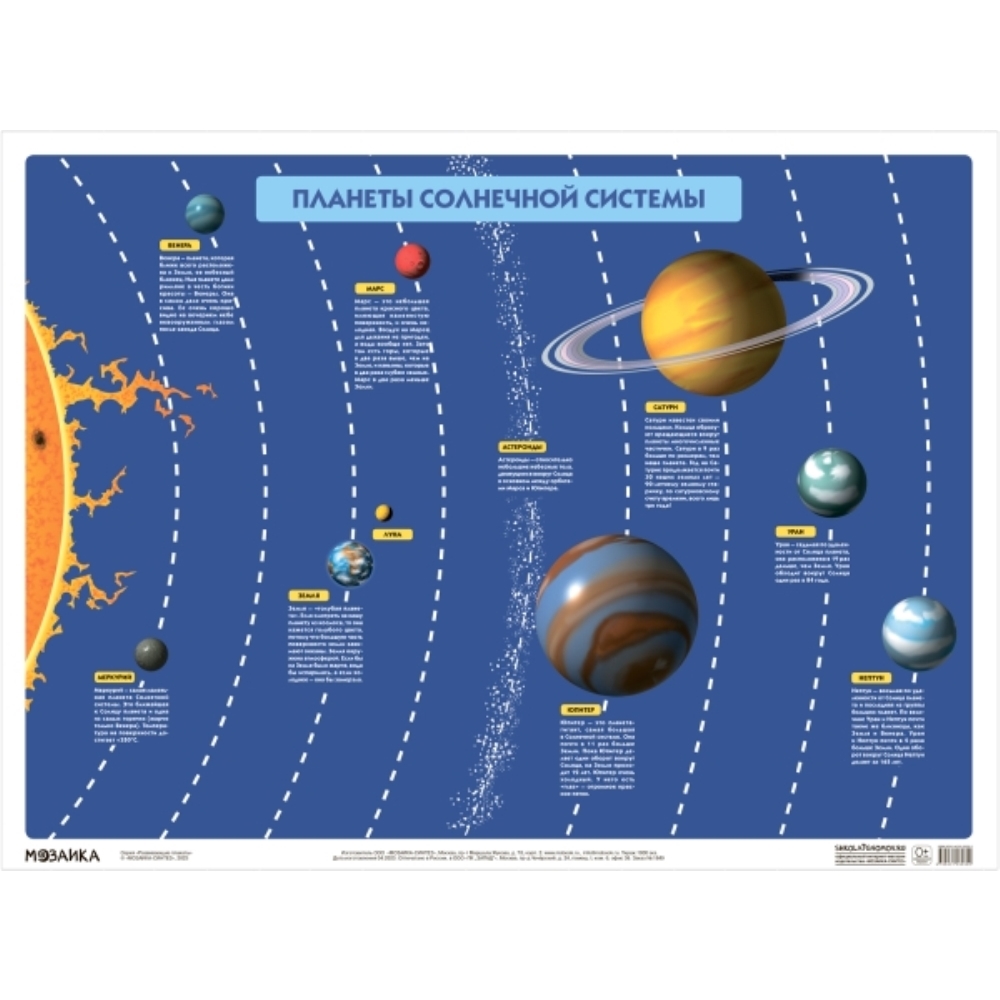 Данный развивающий плакат используется для формирования у детей представление о планетах в космической галактике, знакомства с их количеством, размером, названием, строением, цветом и отдаленностью от солнца. Плакат помогает детям сформировать первичные представления об астрономии, побудить их интерес к дальнейшему изучению окружающего мира и тягу к новым открытиям.