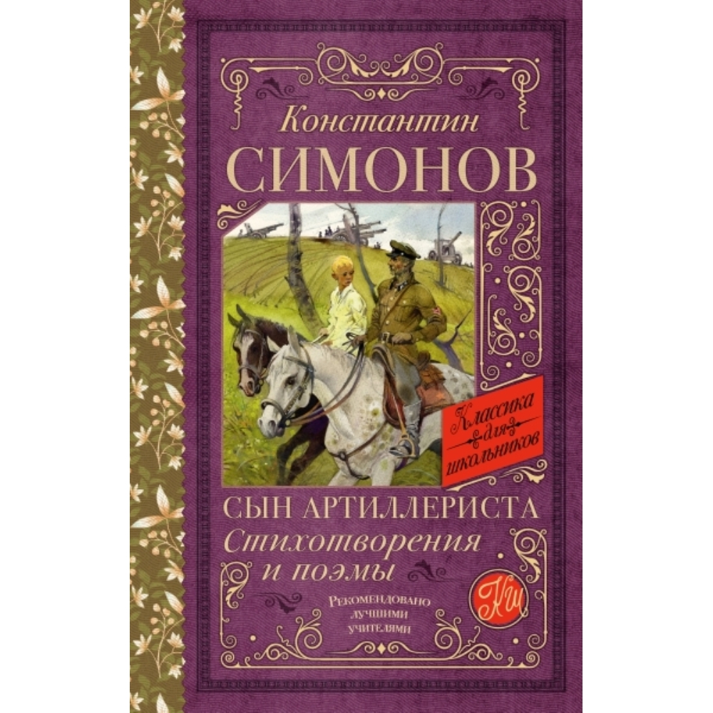 Константин Михайлович Симонов (1915 – 1979) – советский писатель, военный корреспондент, общественный деятель. Как военный корреспондент побывал на всех фронтах Великой Отечественной войны, прошел по землям Румынии, Болгарии, Югославии, Польши и Германии. Поэма «Сын артиллериста» (1941) повествует о дружбе двух боевых товарищей Деева и Петрова. Когда один из них погиб, ко второму под командование попадает сын умершего – Лёнька Петров, к которому Деев привязался, словно к собственному сыну. Поэма была написана Симоновым по специальному заданию командования, с целью поднять боевой дух солдат. В основе сюжета – реальный рассказ, услышанный поэтом у знакомого офицера. «… «Сына артиллериста» я написал в один присест, буквально за одни сутки, в Архангельске в ноябре сорок первого…» В сборник также вошли поэмы «Ледовое побоище», «Суворов» и военная лирика поэта.