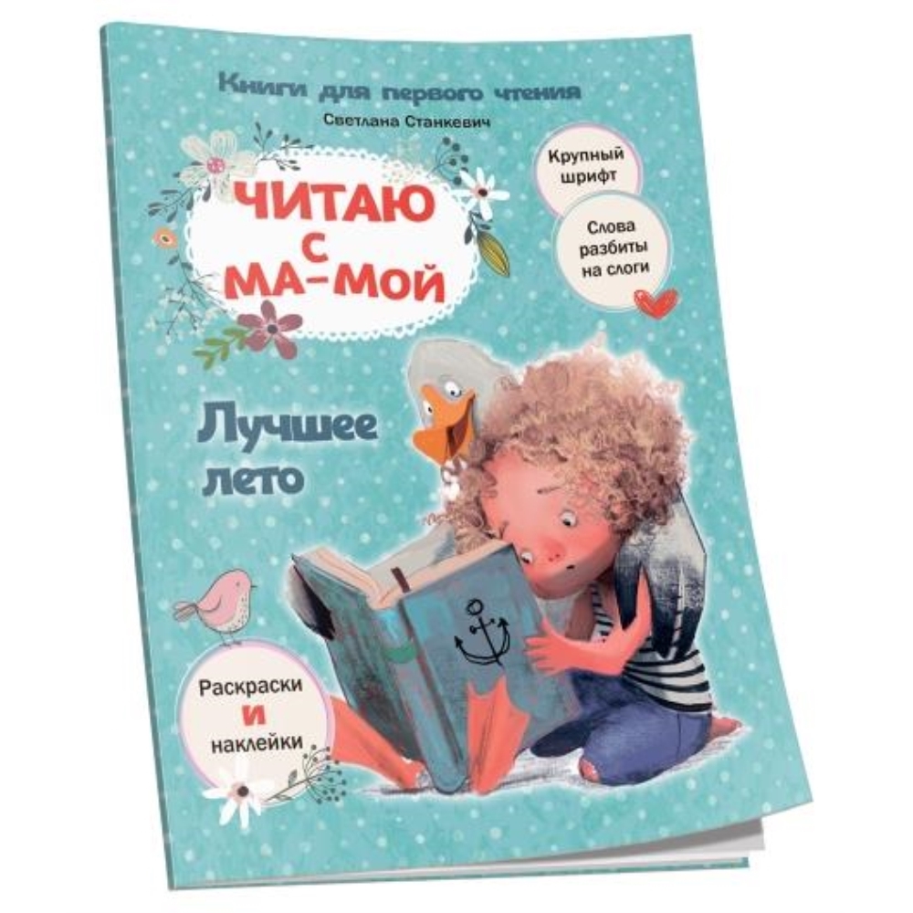 Книги этой серии прекрасно подойдут детям для первого чтения. Ребёнок не будет уставать, ведь читать предстоит вместе с мамой. Истории в книге поделены на фрагменты — для мамы и для начинающего читателя. Отрывки для малыша напечатаны крупным шрифтом и содержат простые слова, разбитые на слоги. Так ему будет удобнее водить пальчиком и соединять буквы в слова. А наклейки и раскраски превратят уроки чтения в увлекательную игру!
