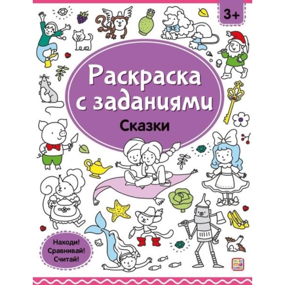 Ух ты! Окунись в волшебный мир раскрасок и игр! На каждой странице раскраски «Сказки» тебя ждут забавные картинки, множество интересных заданий и сюжетов для раскрашивания. Считай, ищи героев, находи пары, раскрашивай картинки и играй! Развиваем моторику и логику вместе с серией «Раскраски с заданиями».
