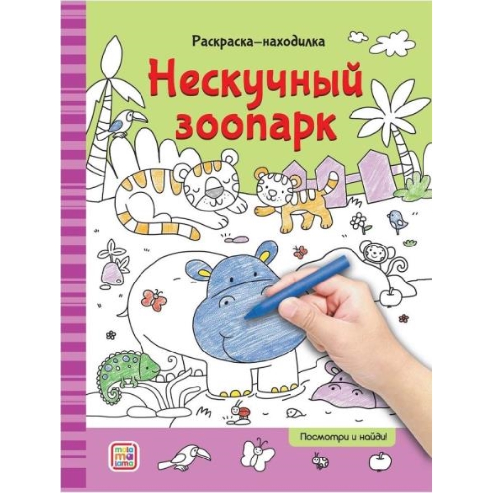 Создать яркое настроение себе и ребёнку просто, если в ваших руках раскраска-находилка «Нескучный зоопарк» от Malamalama. В ней ребёнок будет не только раскрашивать, но и играть.Ведь на каждой страничке нужно найти спрятавшиеся картинки. Кто с этим справится быстрее? Внутри вас ждут весёлые персонажи и забавные сюжеты для раскрашивания. Осталось взять в руки яркие карандаши!