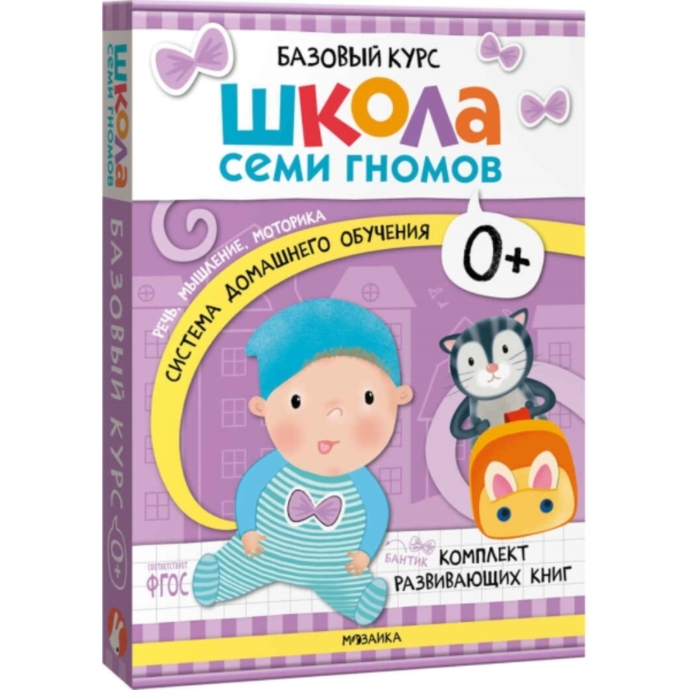 Школа Семи Гномов – это система, а не набор книг. Комплекс из 6 книг Базового курса направлен на развитие когнитивных способностей ребенка: познавательный интерес, умение думать, анализировать, делать выводы.Система выстроена таким образом, чтобы ребёнок получил необходимые знания в правильный момент. Поэтому все книги в Школе Семи Гномов имеют четкую возрастную адресацию и разработаны строго с учетом возрастных возможностей ребенка. Но самое важное, чтобы занятия с ребенком давали результат и приносили радость. Поэтому все задания выстроены от простого к сложному и следуют принципу «развитие через игру». Заниматься с ребенком может любой взрослый, специальных знаний и опыта не требуется. Родительская страничка в каждой книге подскажет, что, как и почему нужно развивать в данном возрасте.А еще в Школе Семи Гномов очень сложно заблудиться, ведь каждому возрасту соответствует свой цвет и свой герой. В течение всего обучения ребенка сопровождают семь Гномов – персонажи, списанные с детей соответствующего возраста. Самых маленьких сопровождает фиолетовый цвет и гномик Бантик.Обучение — это приключение. Пристегните ранцы!