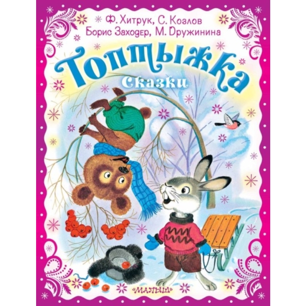 В книгу «Топтыжка. Сказки» серии «Праздничный подарок» вошли сказки известных детских писателей, давно ставшие популярными у детей — Ф. Хитрука «Топтыжка», С. Козлова «Как Ослик, Ёжик и Медвежонок встречали Новый год», Бориса Заходера «Хрюк на ёлке» и М. Дружининой «Пирог счастья». Это сказки о дружбе, доброте, взаимовыручке и, конечно же, о любимом весёлом празднике и Новогодних приключениях зверят. Художники С. Бордюг и Н. Трепенок. Для дошкольного возраста.