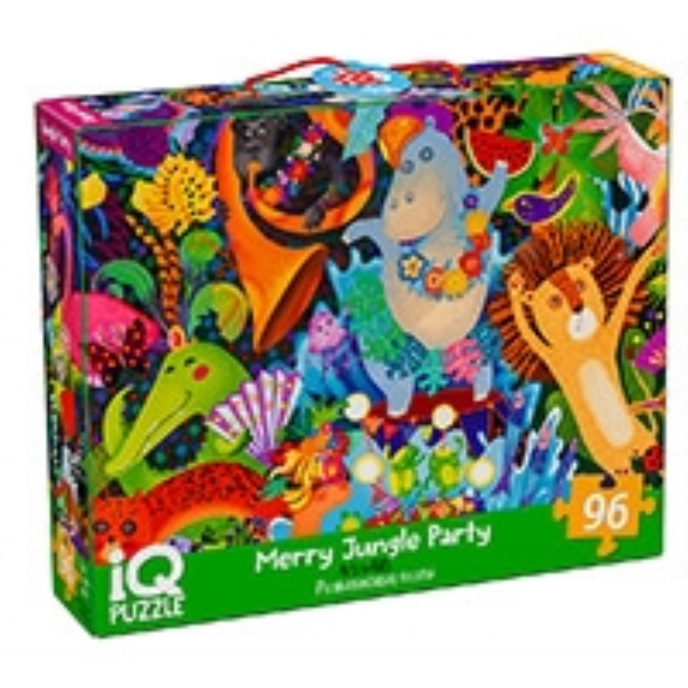 Пазл с изображением животных в джунглях состоит из 96 элементов. Размер картинки 332х480 мм. Собрав пазл, можно сыграть в игру на внимание. На рамке вокруг картинки изображены различные предметы. Задача - найти их на картинке.Предназначено для детей от 6 лет.