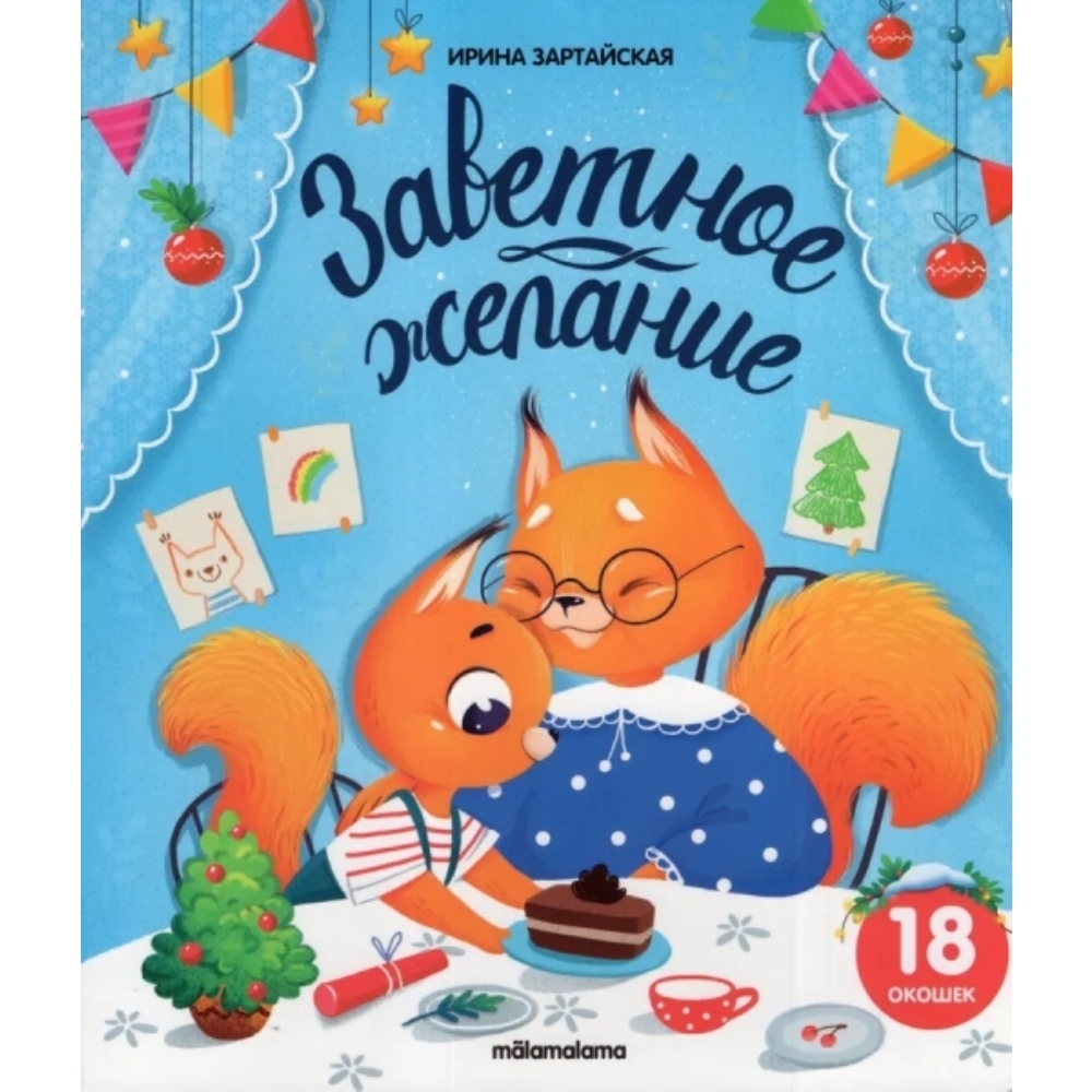 Удивительная и трогательная история Ирины Зартайской «Заветное желание» о крошке Бельчонке, который очень хотел получить много подарков на самый любимый праздник в году. Что же попросить у Дедушки Мороза? Новые коньки? Санки? Рюкзак? А может... что-то гораздо более важное? Читайте историю крошки Бельчонка, готовьтесь вместе с ним к Новому году, и открывайте для себя своё самое заветное желание. Яркие добрые иллюстрации, большие красочные окошки, новогодняя атмосфера и праздничное настроение — в книжке с окошками от торговой марки Malamalama!