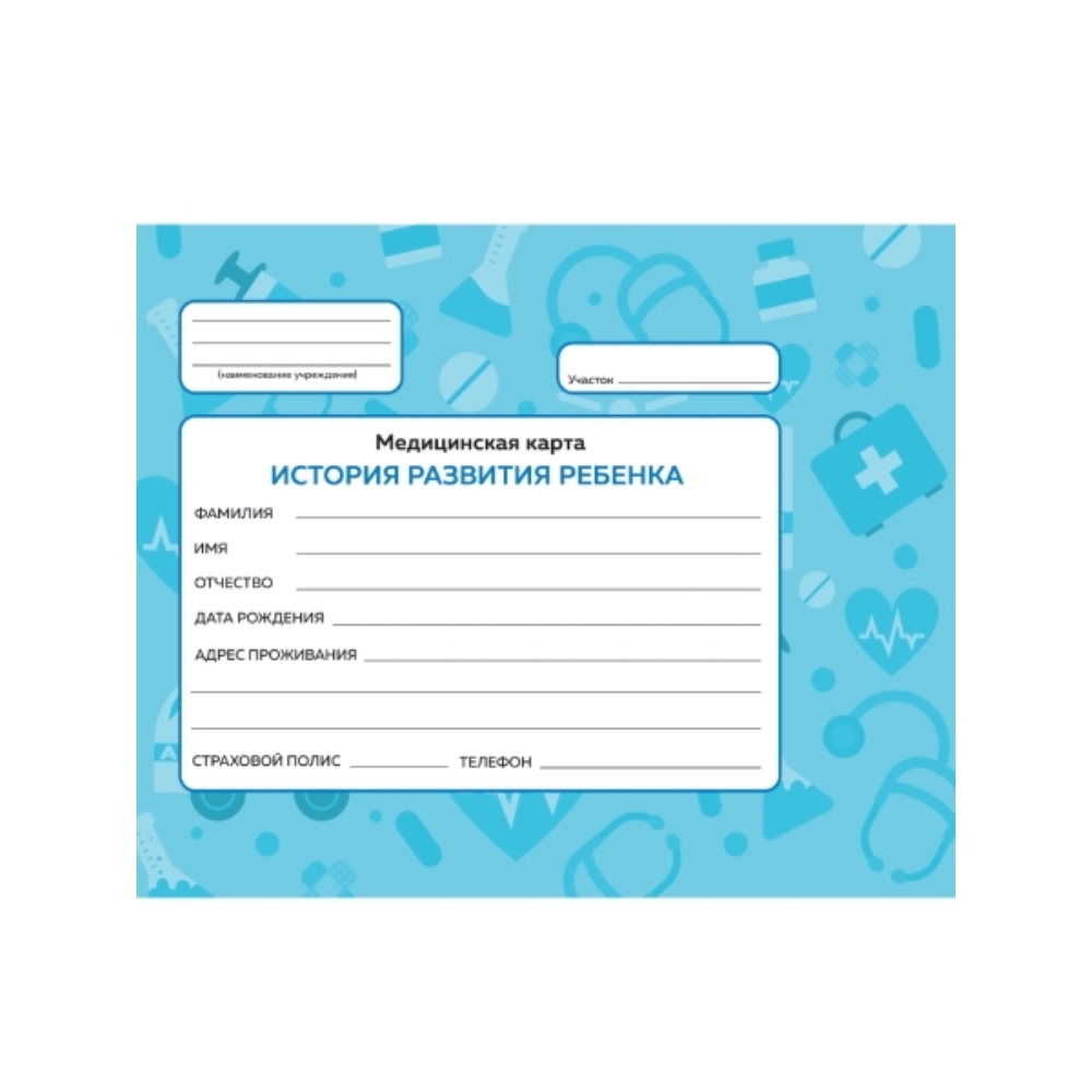Медицинская карта необходима с рождения каждому малышу. Наша карта составлена по стандартной форме 112/у История развития ребенка и содержит разделы для сведений о новорожденном, профилактических осмотрах, диагнозах, вакцинации и многом другом, а также большое количество дополнительных страниц. Благодаря твёрдой обложке и удобной резинке карта прослужит долгие годы, сохранив аккуратный вид.