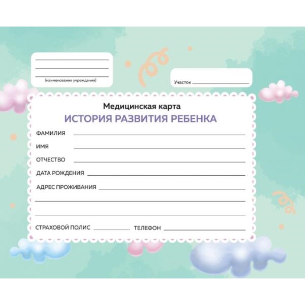 Медицинская карта необходима с рождения каждому малышу. Наша карта составлена по стандартной форме № 112/у История развития ребенка и содержит разделы для сведений о новорожденном, профилактических осмотрах, диагнозах, вакцинации и многом другом, а также большое количество дополнительных страниц. Благодаря твёрдой обложке карта прослужит долгие годы.
