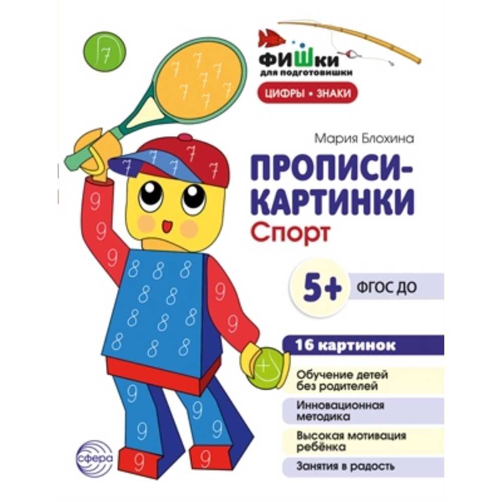Комплекты инновационных прописей-картинок состоят из 16 цветных карточек А5 (155 х 210 мм), объединённых одной темой: «Волшебный лес», «Роботы», «Девочки», «Спорт». Они помогут быстро, легко и эффективно научить детей писать цифры и знаки. Скучное однообразное занятие превратится в увлекательную игру. Детям предлагается с помощью ручек или фломастеров расписать картинку цифрами и знаками. Внизу каждой картинки есть подсказка. На ней показано, как именно следует обводить цифры и знаки. Применяется принцип «светофора»: ребёнок ведет ручку (фломатер) от красной звездочки к желтой, а затем к зеленой. Таким образом он легко запомнит последовательность написания цифр и знаков, а затем сможет автоматизировать данный навык при многократном их начертании на картинке. Наклоны цифр и знаков, пропорции, а также толщина линий соответствуют требованиям ФГОС. Задания в прописях предельно просты. После первых совместных уроков ребёнок сам сможет достать набор и разрисовать картинки, не прибегая к помощи родителей.