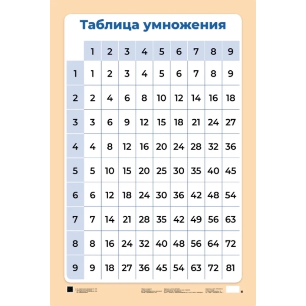 На плакате представлена таблица умножения в наглядной форме. Демонстрационная таблица универсальна и может быть использована как необходимое дополнение ко всем существующим сегодня курсам математики в начальной школе. Таблица умножения станет отличным помощником для учащихся младших классов. Его можно повесить на стене в комнате или учебном классе как шпаргалку-напоминание, которая поможет быстро и эффективно выучить таблицу умножения.